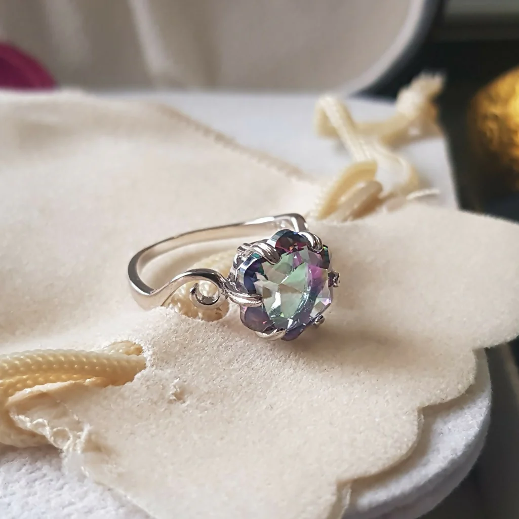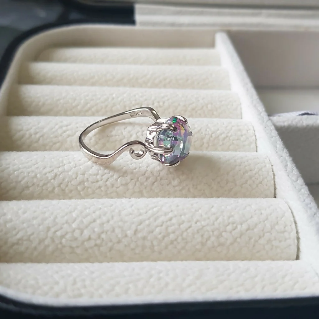 Anillo plata 925 europea piedra tornasol disponibles en tallas 6,7,8,9, puede utilizarse como anillo de compromiso o promesa. por favor ver la medida de miedra en imagen 2 ya que es un poco grande.