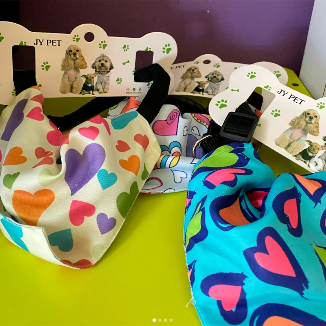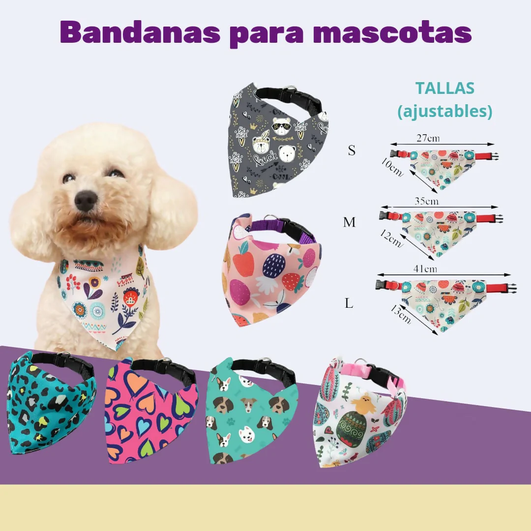 Bandanas para mascotas tipo collar con tallas ajustables con diseño triangular.