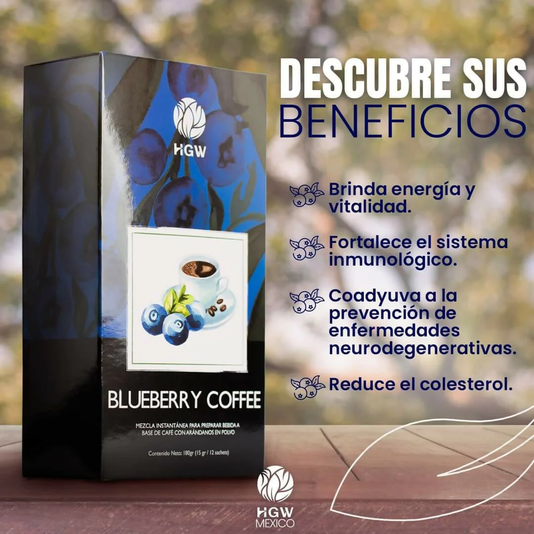 Café: “estimulante” y “energizante”. “Mejora la atención y concentración del individuo”. “Reduce la sensación de fatiga mental y física”. “Consigue retardar la aparición del alzheimer”. ARÁNDANOS (Vaccinium corymbosum L): El alto contenido antioxidante de los arándanos ayuda a regular la respuesta inmune, promueve la actividad antiinflamatoria y fortalece las membranas celulares, entre otras funciones importantes.