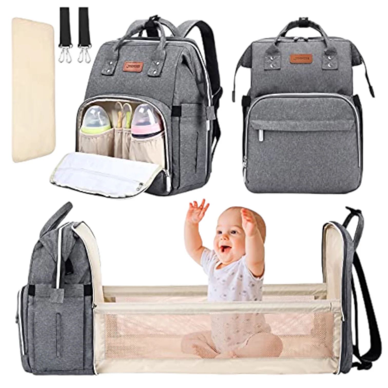 Pañaleras 3 en 1 con cambiador incluido.