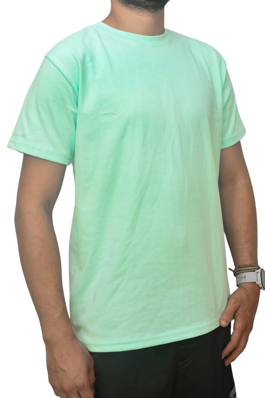 Camiseta básica cuello redondo de algodón unisex, varias tallas adultos y niños.