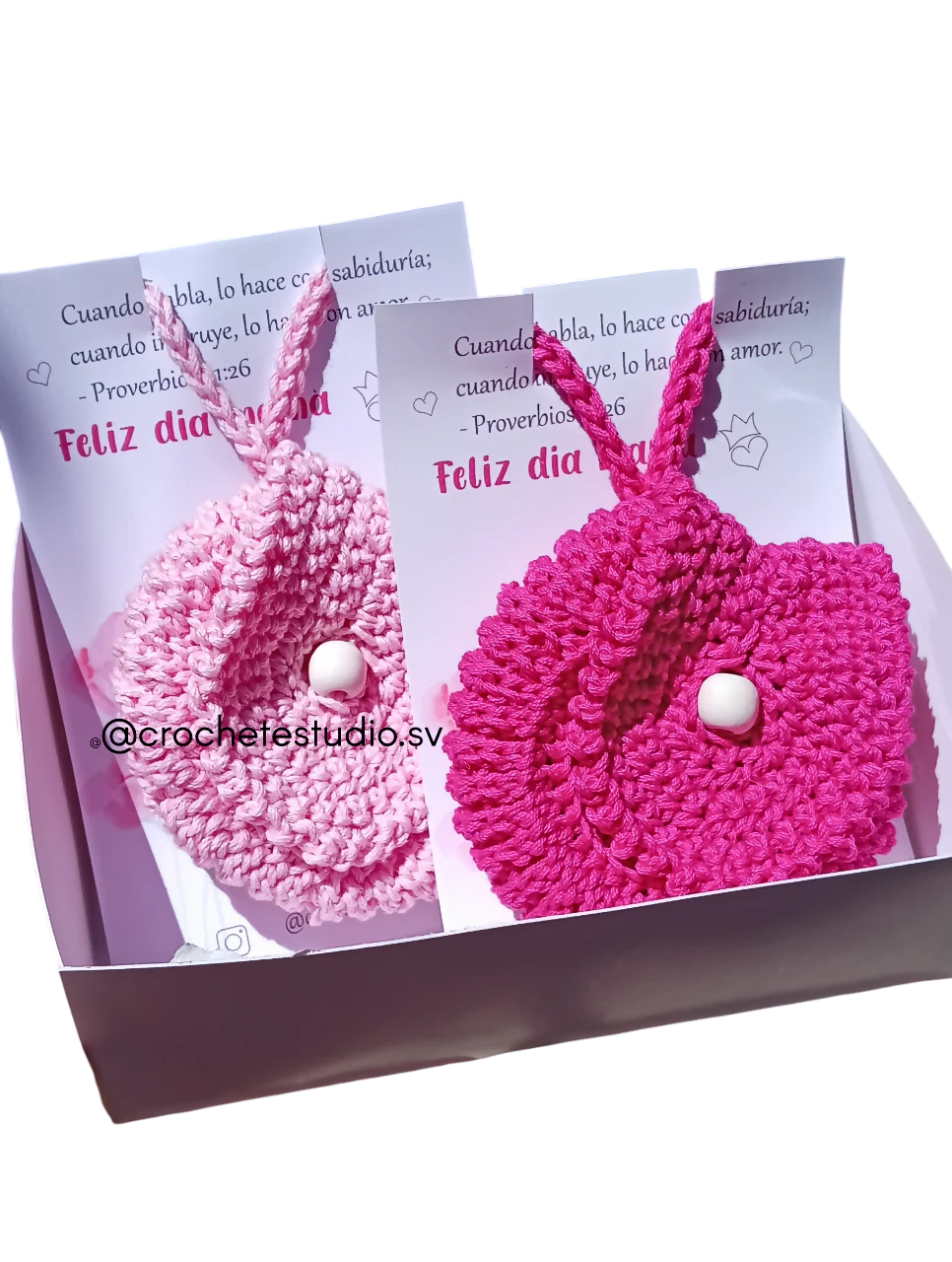 Monedero tejido a crochet en hilo de algodón, con cierre de cuenta de madera y colgante