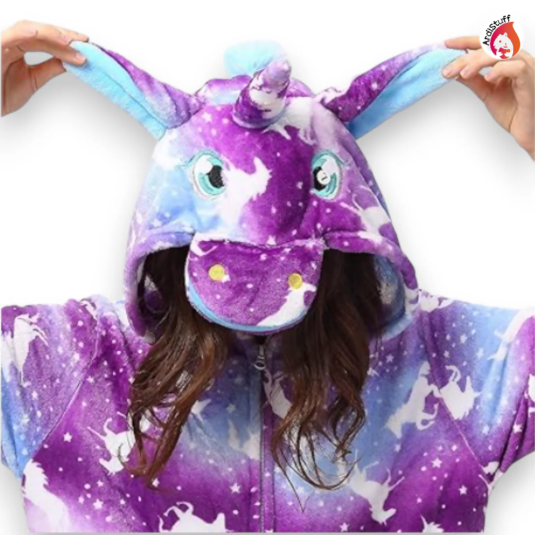 Pijama disfraz (Kijgurumi) Unicornio Unisex, hipoalergénico perfecto para tus fiestas, pijamadas y noches de Netflix.