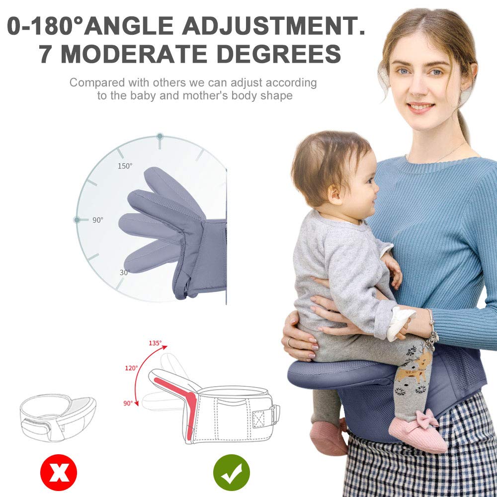 Ahorra Esfuerzo para las Mamás– El portabebés de cadera para niños pequeños está diseñado con una almohadilla de alivio de presión abdominal y un cinturón ancho. Como nueva madre, usualmente sientes dolor de espalda, es un portabebés cómodo para mamás. Este tipo de portabebés es adecuado para madres posparto, y también puede reducir la presión sobre el abdomen y la cintura.
