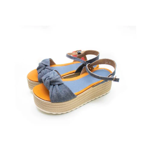 Sandalias en tela denim suela alta.