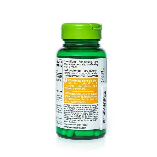 Vitamina importante para la producción de proteínas, hormonas y neurotransmisores. Apoya el metabolismo de la energía y la salud del sistema nervioso.