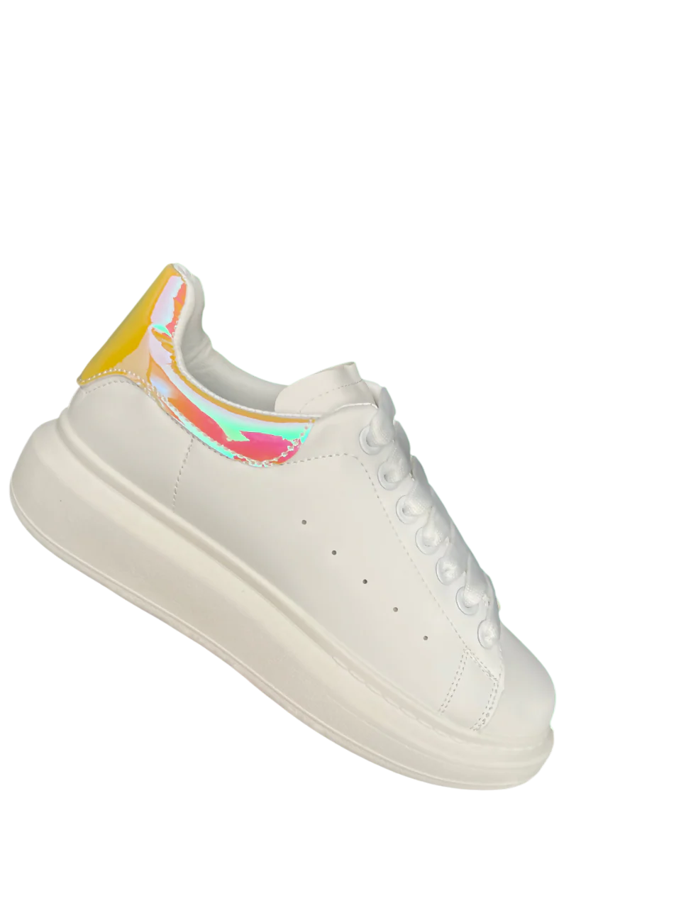 Zapatillas casuales para dama. Color blanco con detalle multicolor.