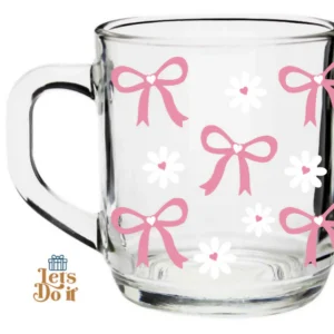 Taza de vidrio moños y margaritas