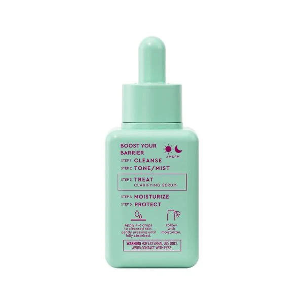 Combate los signos de los brotes y calma la inflamación, la grasa y el enrojecimiento desde su origen. Nuestro exclusivo complejo Tri-Ceramide (ceramidas, colesterol, ácidos grasos) que estimula la barrera funciona con una potente combinación de tanaceto azul (rico en antioxidantes) para calmar, aclarar y calmar la piel. El PHA y el zinc exfolian suavemente, atacan las imperfecciones y ayudan a destapar los poros sin resecar ni alterar la delicada barrera cutánea. La piel luce equilibrada, más luminosa y más saludable con el uso regular.