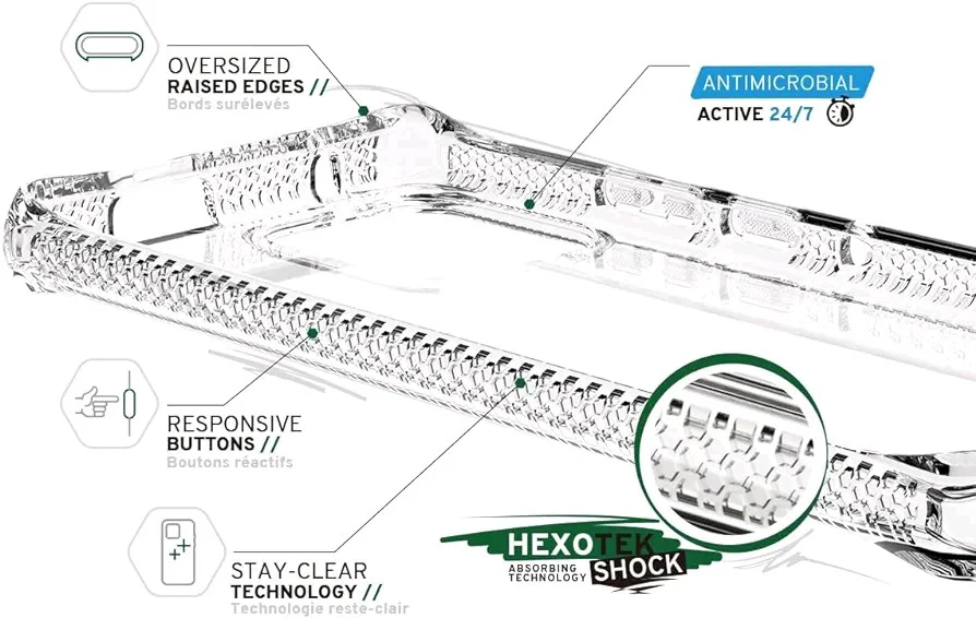 Absorción mejorada de golpes: utiliza tecnología de absorción de impactos Hexotek y materiales de primera calidad para una protección superior del dispositivo. Experimenta resistencia a los golpes, protegiendo tu teléfono de daños severos.