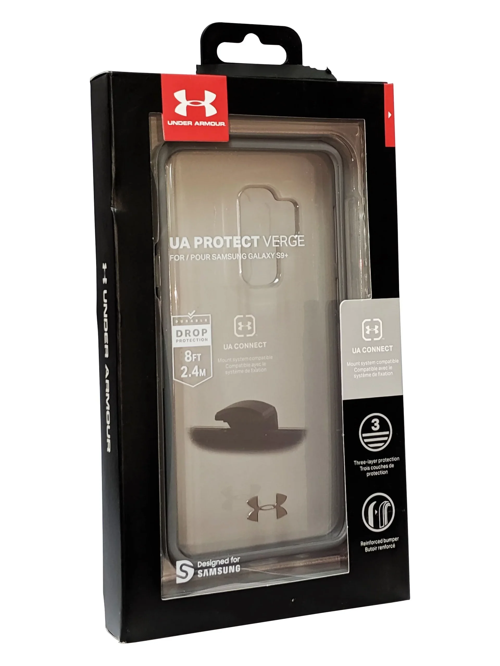 Perfectamente compatible El estuche Protect Verge se alinea con su Samsung Galaxy S9+ para brindar acceso completo a todos sus puertos y controles. Además, es parte del sistema UA connect, por lo que es compatible con todos los soportes Under Armour, incluido el soporte magnético Connect.