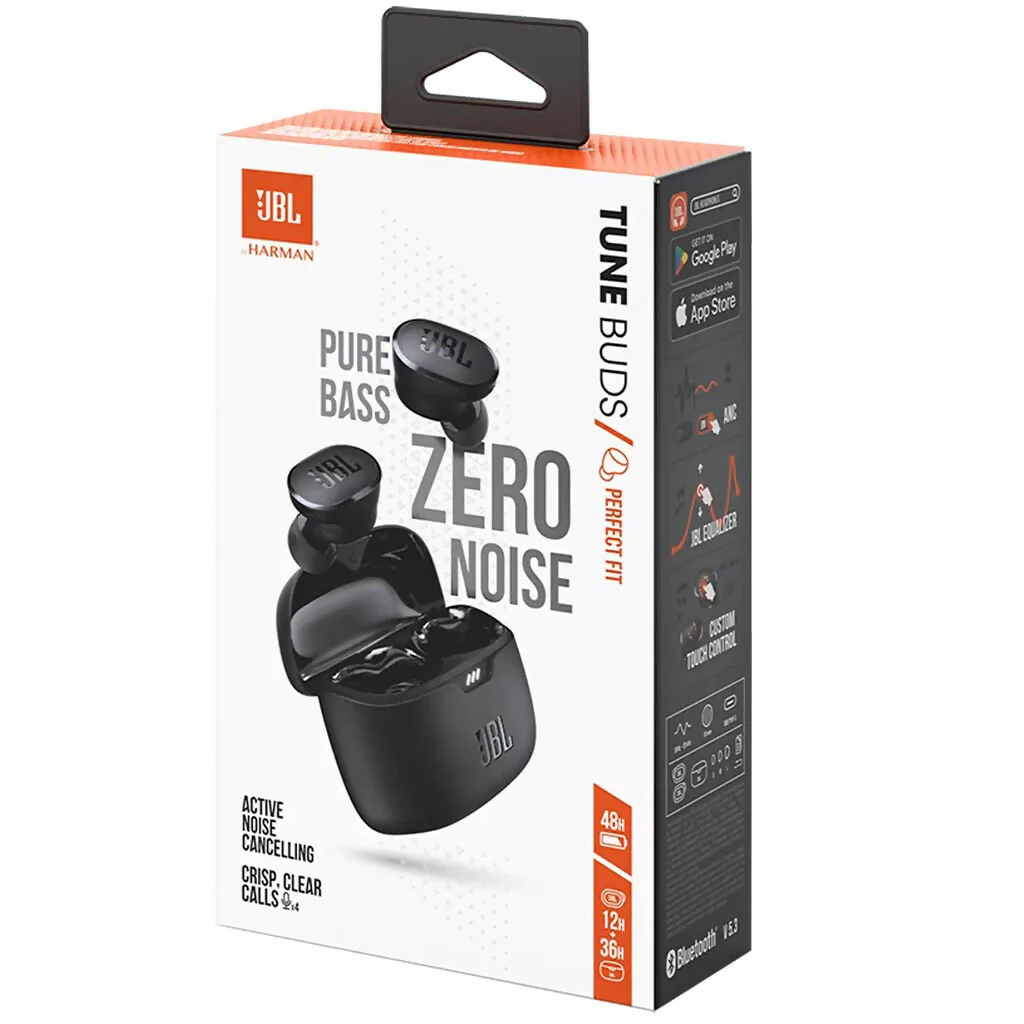 Bajo puro y cero ruido.Enfréntate a tu día una canción a la vez con los JBL Tune Buds. Estos verdaderos auriculares inalámbricos le brindan hasta 48 horas de sonido JBL Pure Bass excepcional, mientras que el diseño ergonómico, resistente al agua y al polvo le brinda comodidad durante todo el día en cualquier clima. Un simple toque te permite gestionar y disfrutar de llamadas perfectas en cualquier lugar, sin ruidos ambientales. Y con la tecnología Active Noise Cancelling y Smart Ambient, eliges si quieres desconectarte del mundo o interactuar con tu entorno. El diseño de capullo garantiza un aislamiento perfecto de los ruidos exteriores y un ajuste seguro. Lo mejor de todo es que la aplicación JBL Headphones te permite personalizar toda tu experiencia auditiva. Manténgase conectado con su mundo, a su manera.