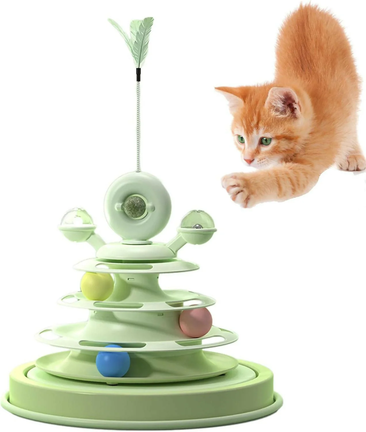 Utiliza nuestro juguete giratorio para gatos para despertar el interés de los gatos en rascarse, reducir su daño en casa y proteger eficazmente tus muebles. La menta atrae a los gatitos para que puedan jugar todo el día. La torre de bolas para gatos tiene que garantizar que los gatos puedan jugar libremente sin lastimarse.
