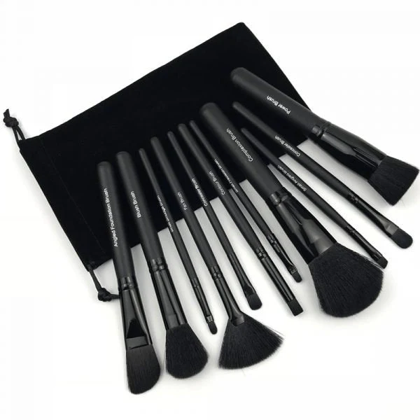 Kit incluye: 11 brochas + 1 delicado bolso de terciopelo color negro para guardar tus brochas.