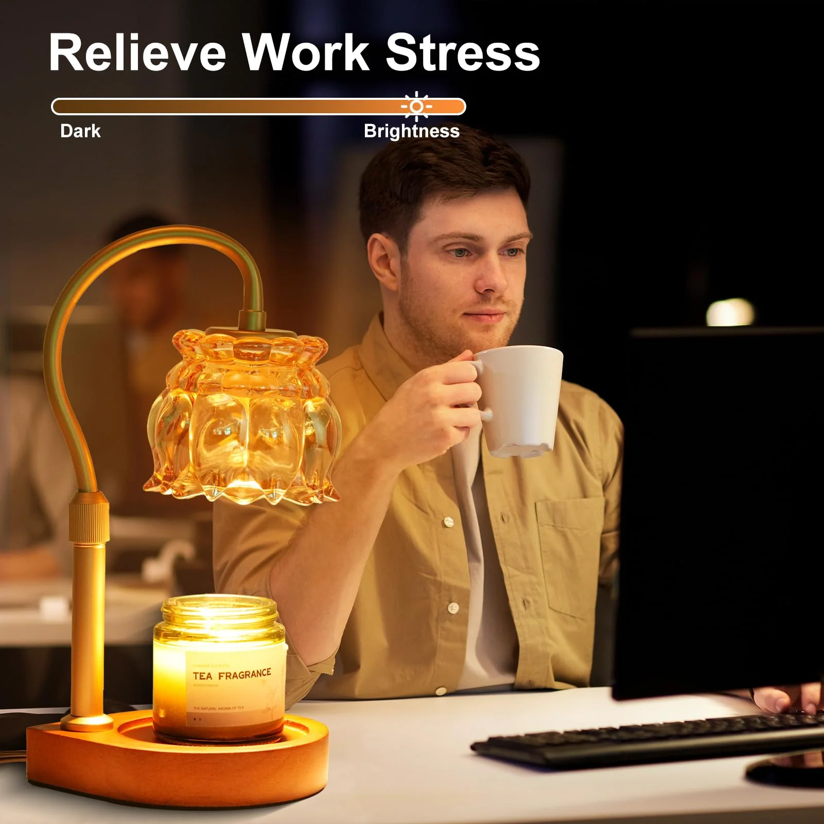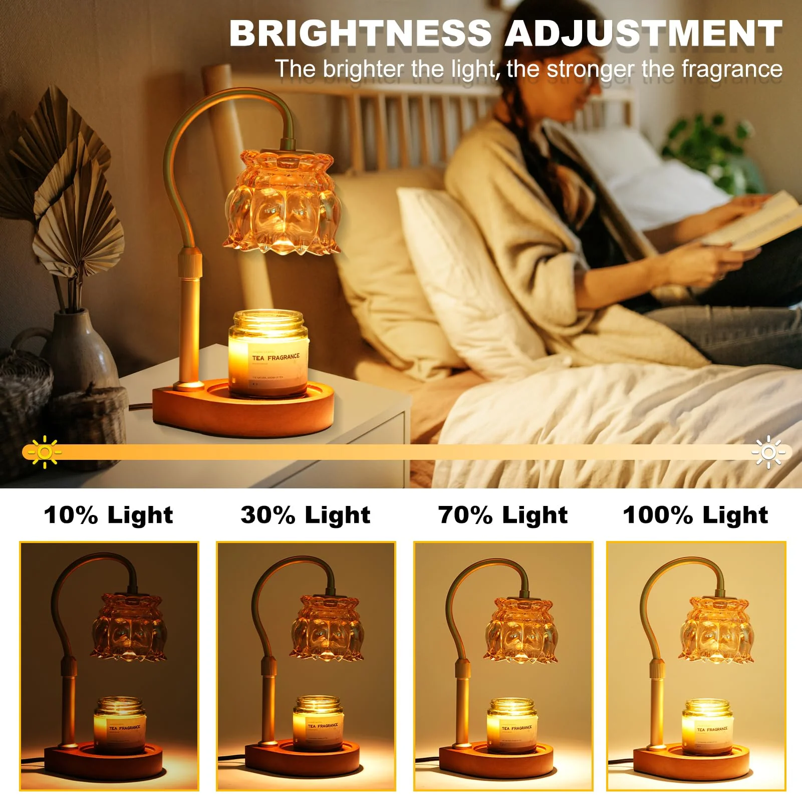 Brillo Ajustable La lámpara calentadora de velas tiene 4 modos de atenuación: 25%, 50%, 75% y 100%. Cuanto mayor sea el brillo, mayor será la velocidad de fusión y el aroma más fuerte. Puede controlar la velocidad a la que se derrite la vela según su estado de ánimo, creando fácilmente el ambiente que desea.