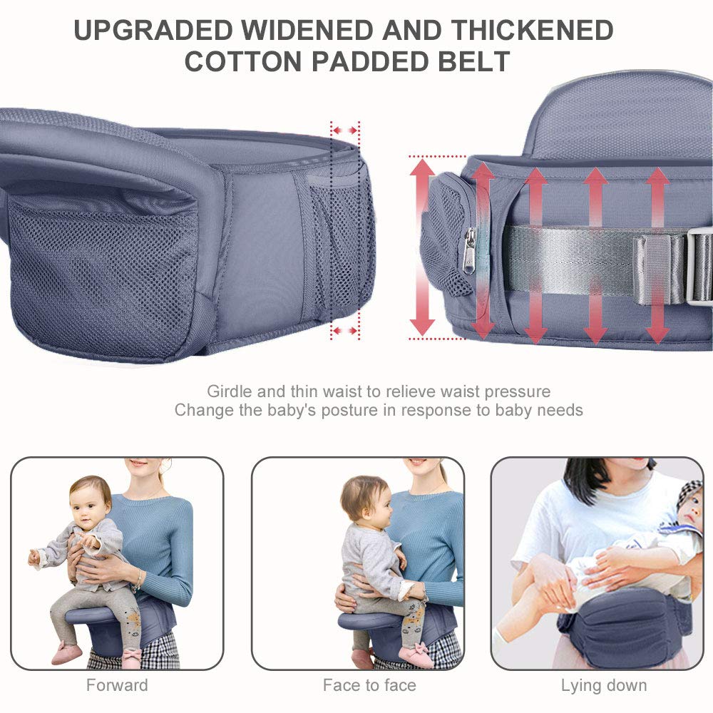 Ahorra Esfuerzo para las Mamás– El portabebés de cadera para niños pequeños está diseñado con una almohadilla de alivio de presión abdominal y un cinturón ancho. Como nueva madre, usualmente sientes dolor de espalda, es un portabebés cómodo para mamás. Este tipo de portabebés es adecuado para madres posparto, y también puede reducir la presión sobre el abdomen y la cintura.