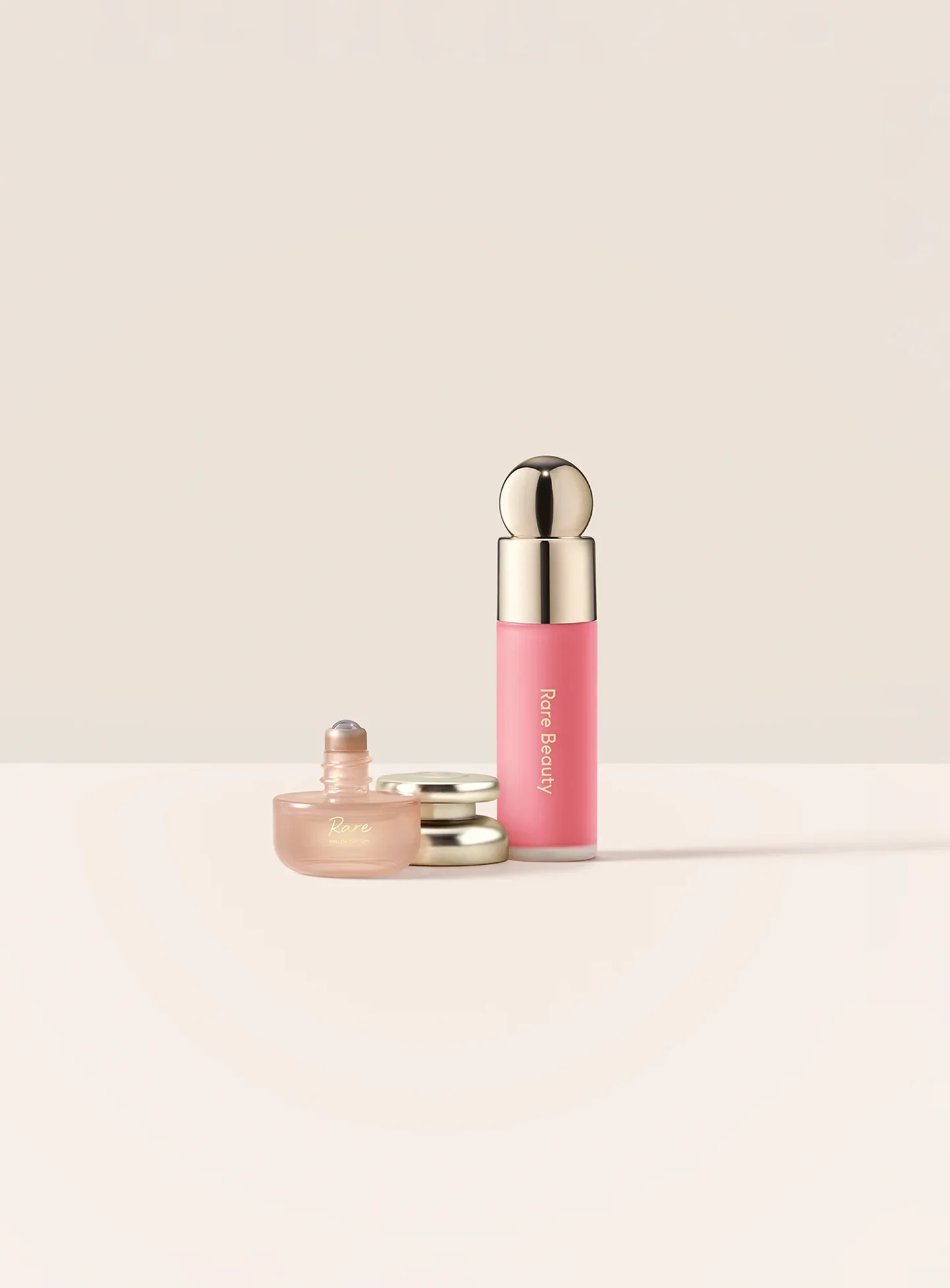 Dos de los elementos esenciales más queridos de Selena en un conjunto imprescindible. Rare Eau de Parfum 5mL Rollerball te envuelve en un aroma cálido y decadente con un toque de especias, mientras que Soft Pinch Liquid Blush en Happy (rosa frío de tamaño completo) le da a la piel un rubor perfecto que dura.