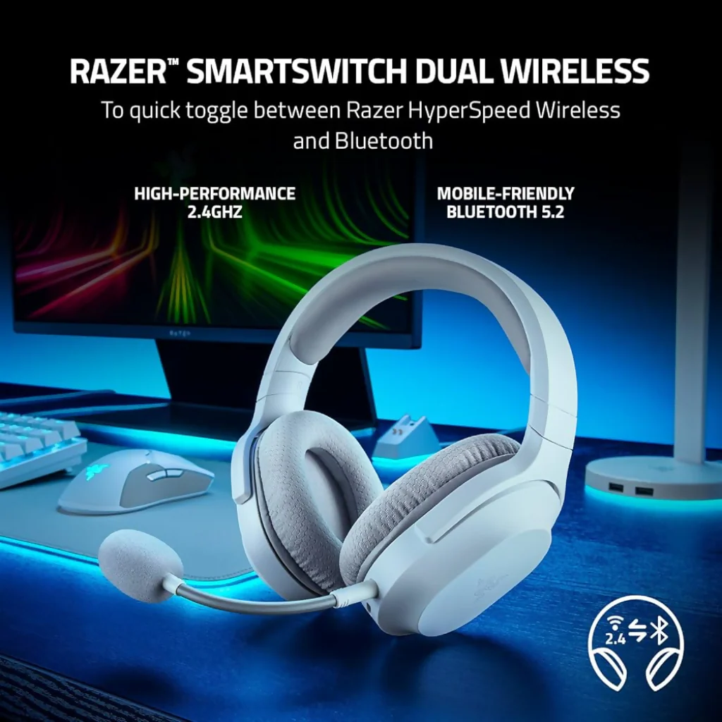 Sumérgete en el mundo de los videojuegos con los auriculares gamer Razer Barracuda X. Diseñados especialmente para los amantes de los juegos, estos auriculares over-ear te ofrecen una experiencia de audio inmersiva y de alta calidad. Con su micrófono incorporado, podrás comunicarte con tus compañeros de equipo de manera clara y nítida. Además, su función de cancelación de ruido te permitirá concentrarte en la partida sin distracciones externas.Los auriculares Razer Barracuda X son inalámbricos, lo que te brinda mayor libertad de movimiento durante tus sesiones de juego. A pesar de no contar con Bluetooth, su compatibilidad con consolas como PlayStation, Nintendo Switch y Xbox asegura que puedas disfrutar de tus juegos favoritos en diferentes plataformas.