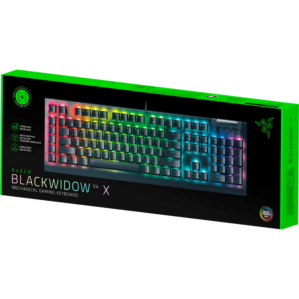 El Teclado Gamer Razer BlackWidow V4 X RGB es un teclado de alta calidad diseñado para los amantes de los videojuegos. Con tecnología de interruptor de tecla Razer Yellow, este teclado ofrece una experiencia de juego suave y receptiva. La retroiluminación LED RGB ajustable le permite personalizar la iluminación según sus preferencias. Con un diseño de teclado QWERTY y teclas multimedia, es ideal para juegos y tareas diarias. Este teclado de tamaño completo cuenta con teclas de doble disparo y teclas rápidas programables para una mayor eficiencia. Con una conexión por cable USB y un cable de 2 metros de longitud, este teclado es fácil de usar y ofrece una conexión estable. Fabricado con material ABS de alta calidad, el Teclado Gamer Razer BlackWidow V4 X RGB es duradero y resistente.