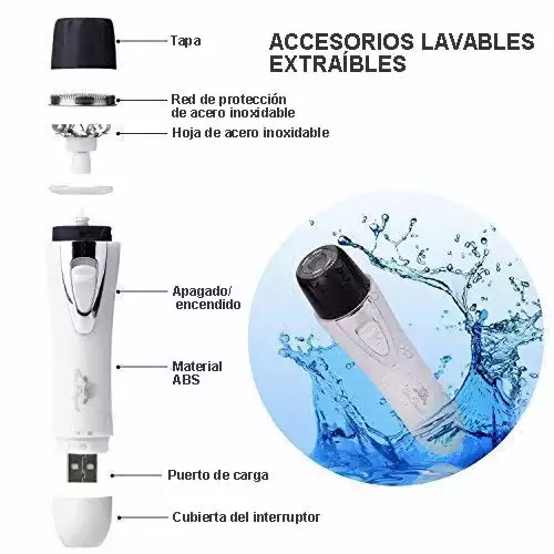 Removedor de vello facial recargable USB Resistente al agua Depilación Facial Eco-friendly ABS, no tóxico, resistente al desgaste, lavable y durable. Se puede eliminar eficazmente el vello corporal sin lastimar su piel. Mini y el diseño elegante, fácil de llevar cuando se viaja.