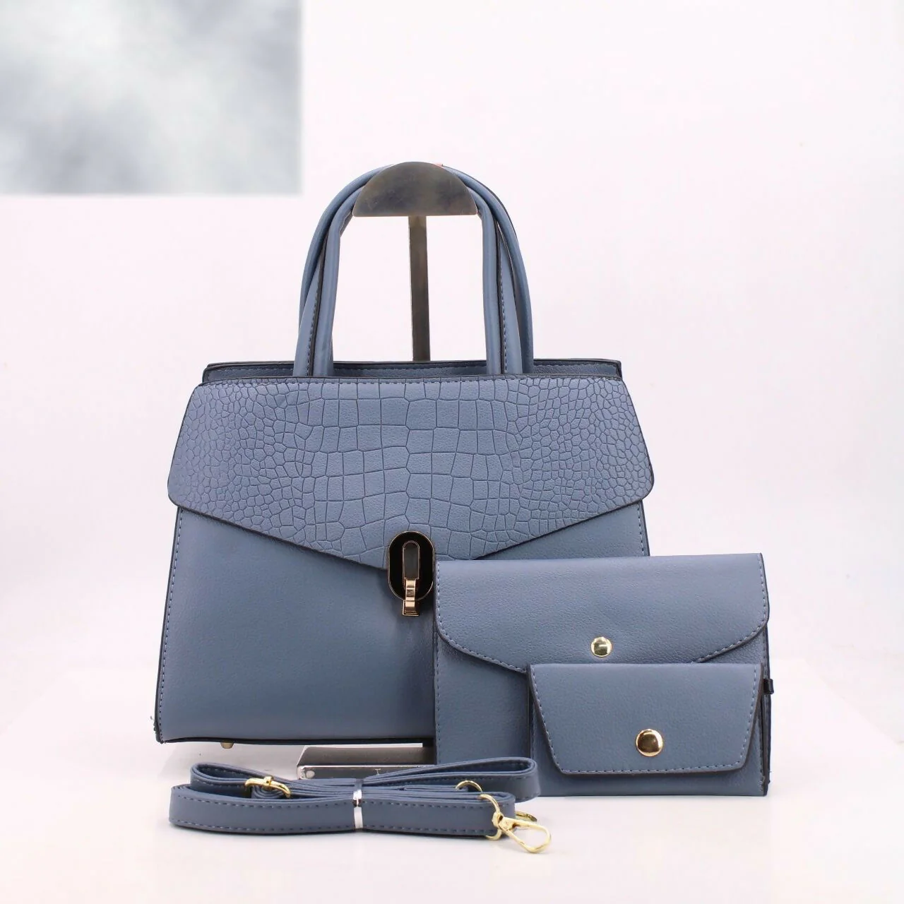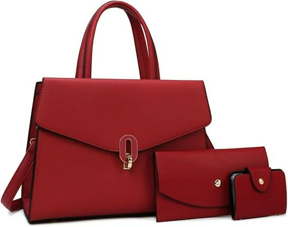 Juego de 3 bolsas de mano y cartera para mujer, con asa superior, bandolera. Material: Piel sintética ultraligera y resistente. Medida: 30 x 21 cm.