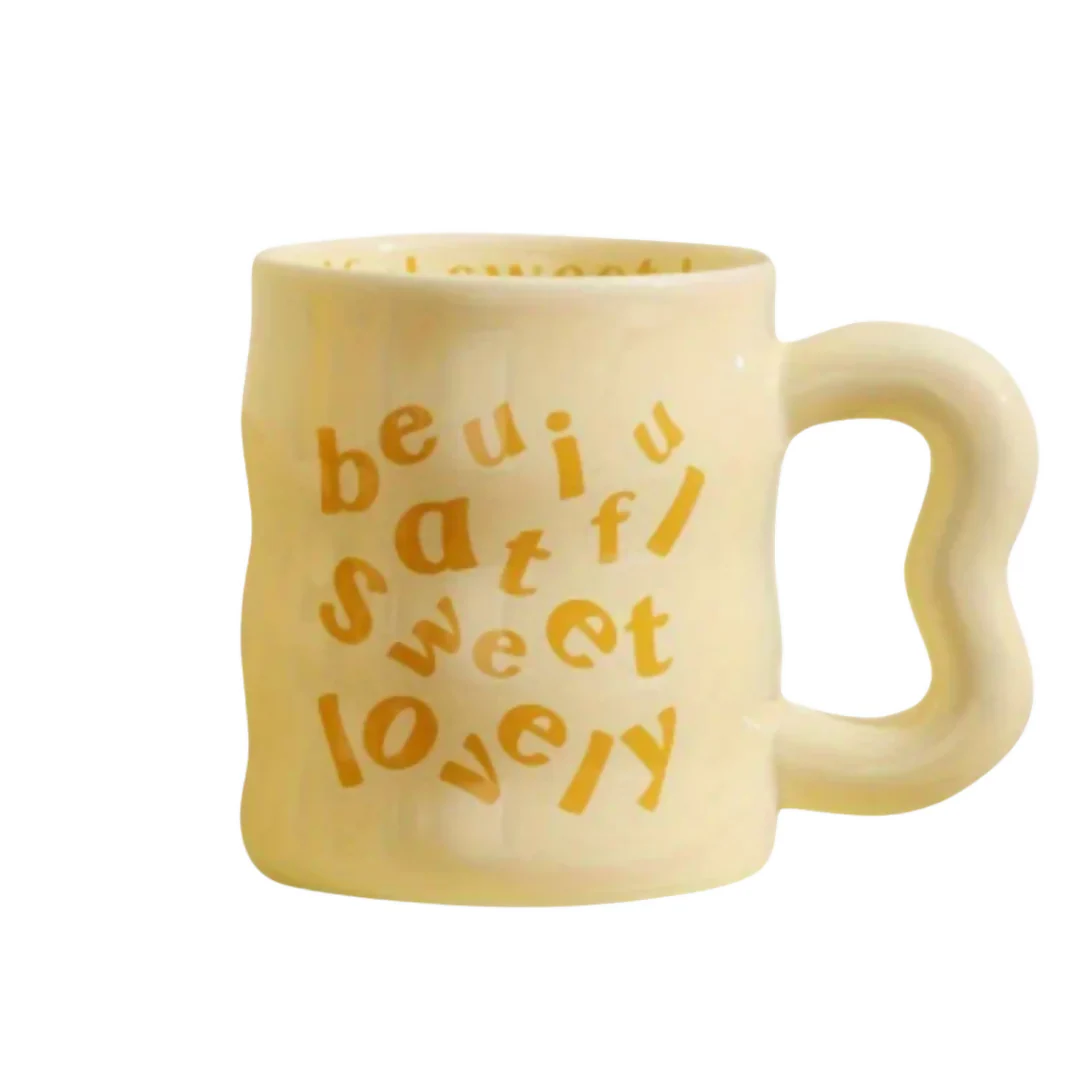 Una Taza de cerámica sumamente hermosa y delicada para una mujer Bella, Dulce y Amada! Asa que simula la forma de un corazón y su forma peculiar la hace tan elegante! Capacidad 13.5 ozs.