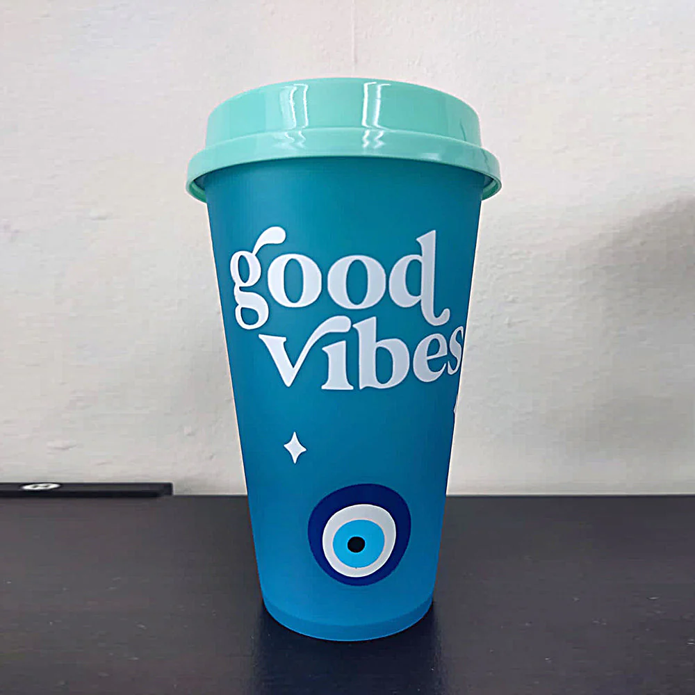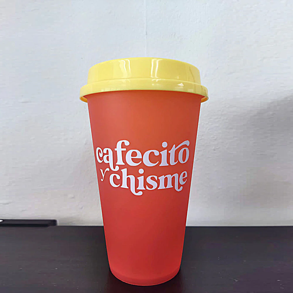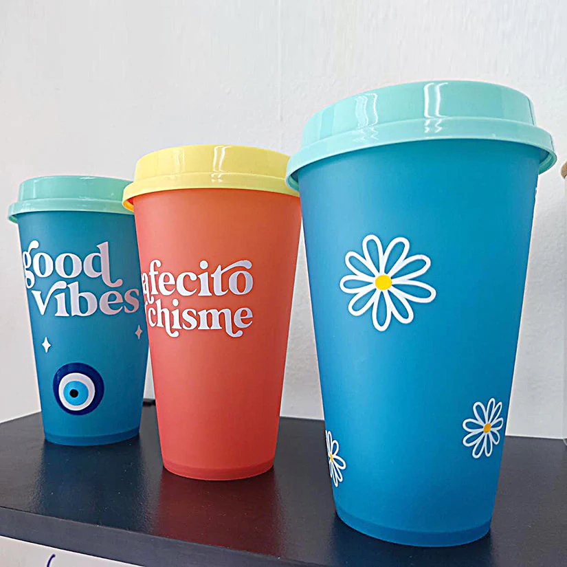 Vaso personalizado de colores variados, 16 oz, libre de BPA, cambia su tono con líquido caliente, posee tapa antiderrames.
