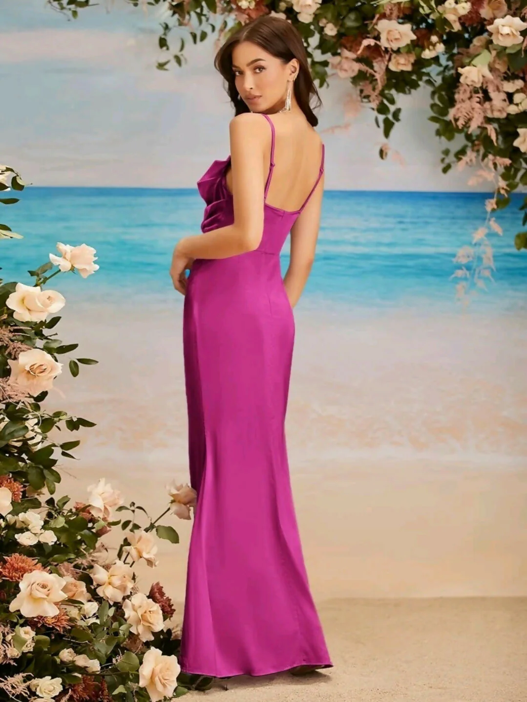 Vestido de gala con abertura en muslo, de tirantes