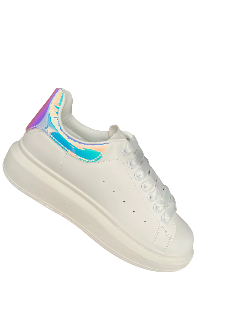 Zapatillas casuales para dama. Color blanco con detalle multicolor.