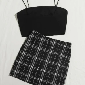 Conjunto top tirantes negro con falda cuadros