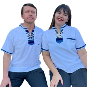 Camisa con textil hecho en telar artesanal